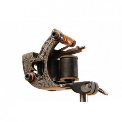 Questa tattoo machine della casa europea Cyber Tattoo Factory, fa parte di una serie premium. È una macchina qualitativamente perfetta, e si adatta a tutti i tipi di aghi. Il si presenta con linee semplici ed eleganti, ed è proprio questo che rende questa macchina piacevole alla vista e per il lavoro. Il telaio è intagliato da un unico pezzo di ottone. La bobbina è composta da 10 strati sovrapposti e la vite è in argento, per un migliore contatto. Il voltaggio è variabile tra 4 - 10V per adattarsi perfettamente al tipo ed alla configurazione dell'ago.