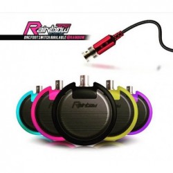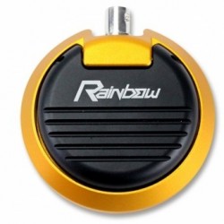Rainbow Footswitch è un pedale molto resistente ma dalle piccole dimensioni. Viene fornito con un cavo di alta qualità da 290 cm con connessione BNC al pedale e una presa classica da 6,3 mm all'alimentatore. Funziona con tutti i tipi di alimentatori ed è completamente realizzato in alluminio areonautico. Il diametro del pedale è di circa 7cm e la base in gomma antiscivolo garantisce una presa solida sul terreno.