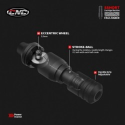 CNC Short Pen Q1 è realizzata in una lega di alluminio di grado aereonautico che la rende una penna per tatuaggio molto leggera e resistente. CNC Short Pen Q1 è molto più silenziosa e vibra molto meno rispetto alle convenzionali macchine per tatuaggio, ma possiede comunque una grande potenze e una battuta regolare e precisa. CNC Short Pen Q1 monta un motore Faulhaber, tedesco e di ultima generazione. Il design del telaio è molto sobrio e semplice, inoltre la forma più corta rispetto alle altre penne tattoo la rende molto maneggevole ed equilibrata. Il motore interno ha uno stroke da 3.5mm standard. Il grip ha un'attacco per cartucce universale e girandolo si può regolare l'escursione dell'ago. RCA standard di alta qualità CNC, Grip da 35mm e oring sostitutivi inclusi nella confezione.