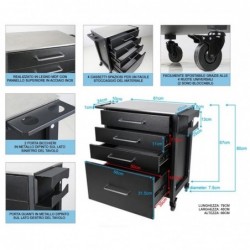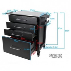 La Tattoo Workstation Basic è un carrello nero robusto e durevole, perfetto per organizzare l'attrezzatura da tatuaggio. Con una solida struttura in acciaio e cassetti in legno MDF con maniglie cromate, offre un aspetto elegante e professionale. Il piano in acciaio inossidabile è facile da pulire, mentre i tre cassetti piccoli e il grande armadio offrono ampio spazio per attrezzature e accessori. Le ruote in gomma con freno garantiscono mobilità e stabilità. Perfetta per una sessione di tatuaggio organizzata e funzionale.